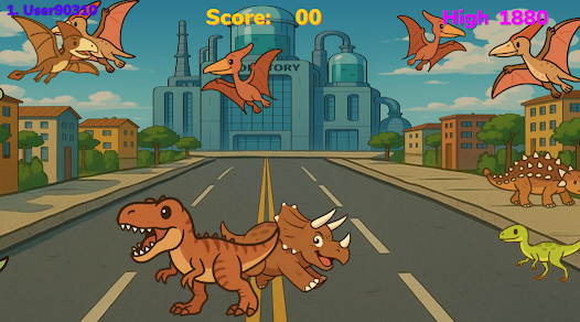 Catch the Tyrannosaurus with missiles by clicking continuously.